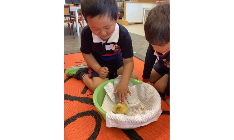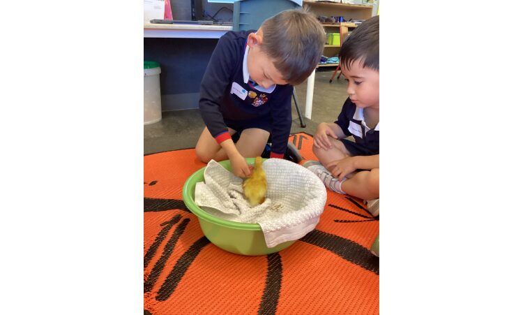 Experiences such as the duckling hatch invited the boys to communicate with others and watch over the little eggs as a team. Whilst the boys nurtured and cared for the eggs, they shared openly their predictions and hypothesised as to when the eggs would hatch. This experience worked particularly well to help settle any nerves or anxieties the boys may be feeling during these very busy weeks and throughout their transition periods.